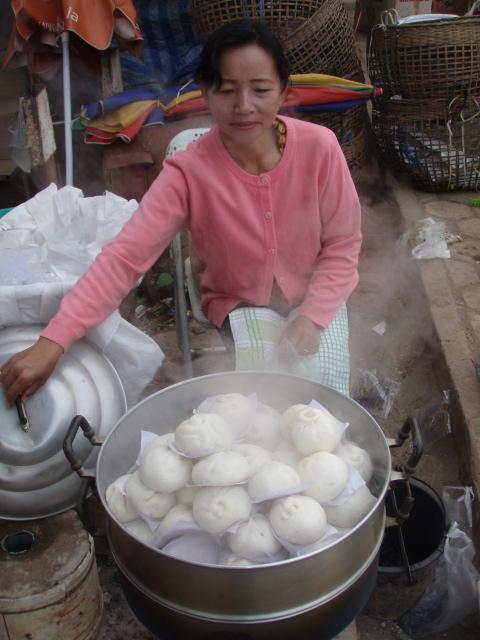 デザートを探してタラーッ内をうろうろ。。。包子屋台があったんで、おお!トゥアダム(あんまん)あるかな?って思ったら、豚まんのみでしたわ〜。残念。。。