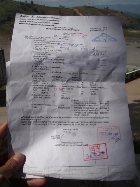 マレーシア8人組の後、僕も無事バイク通関書類(タイ側)に、ラオス出国スタンプ(写真右下)をゲット!よっしゃ、これでラオス出国手続き完了やで〜!