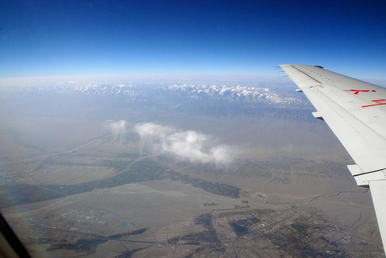 風向きから、飛行機は一旦敦煌空港を行き過ぎました。