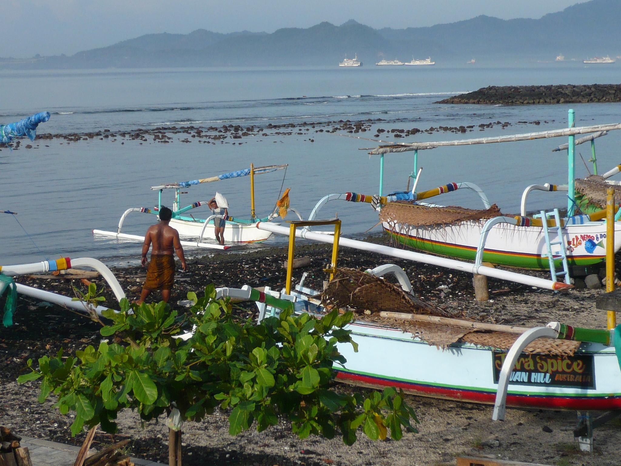 彼方にロンボク島が見えるでしょ・・かすかに(心がきれいな方には見えるはずです。)私は見えます・・。あれ? -