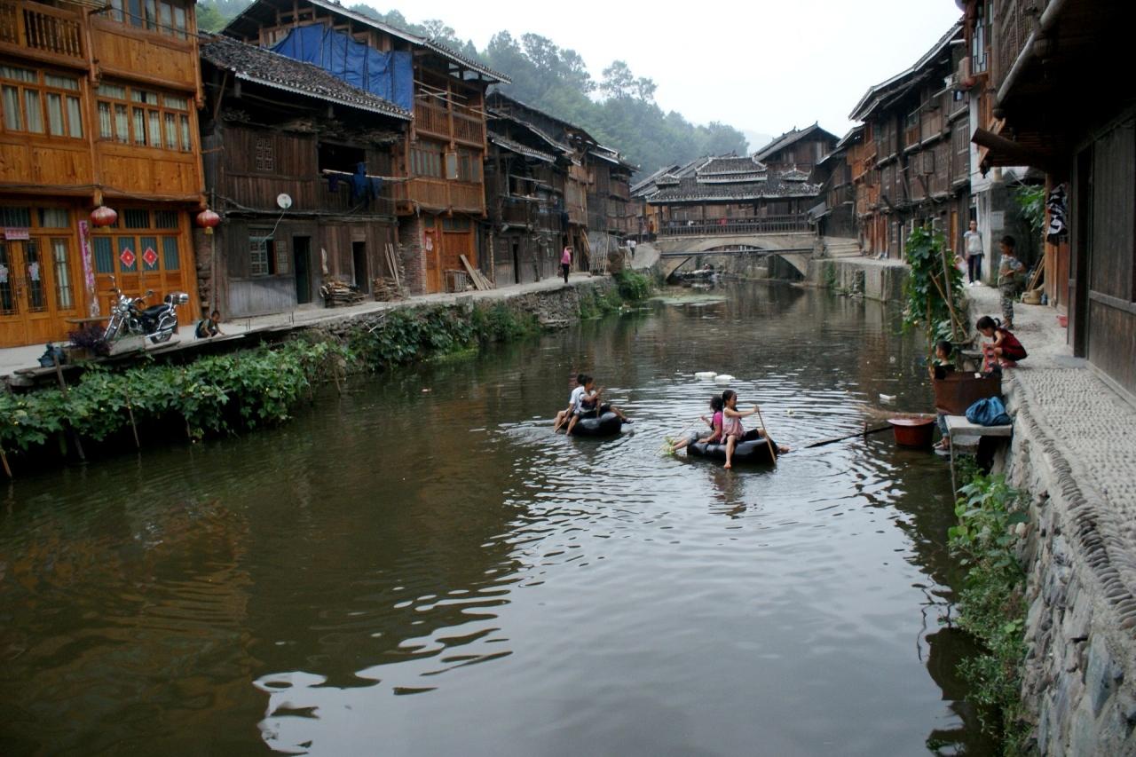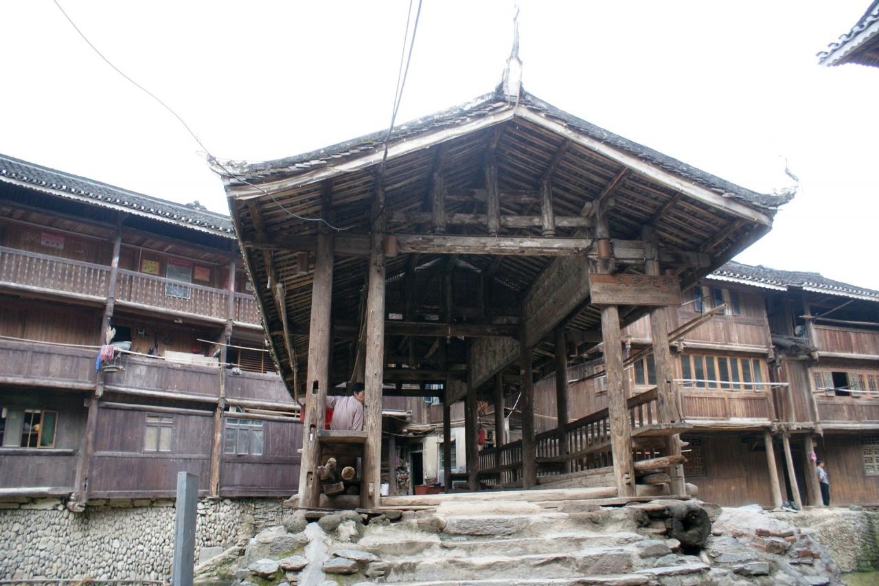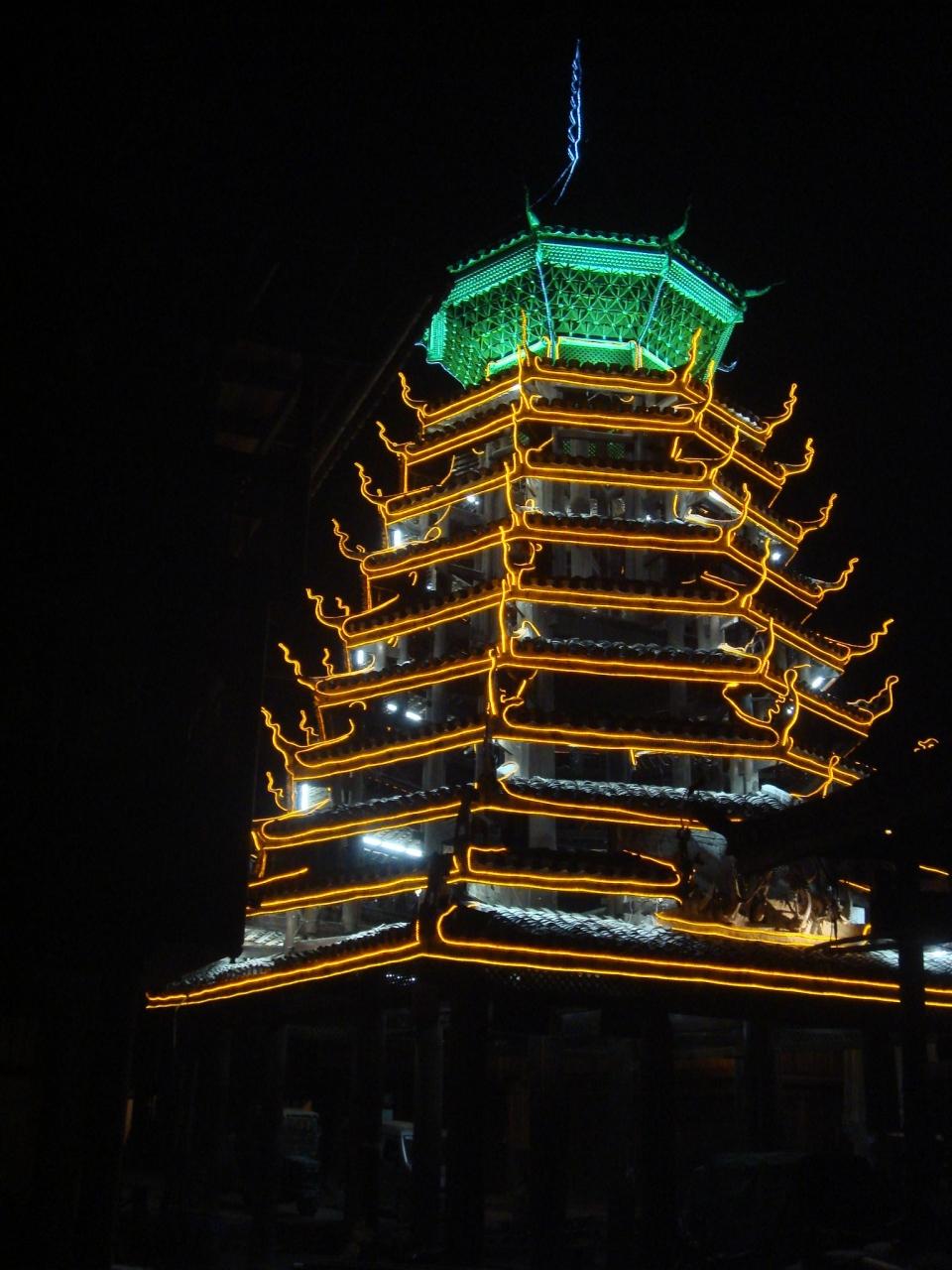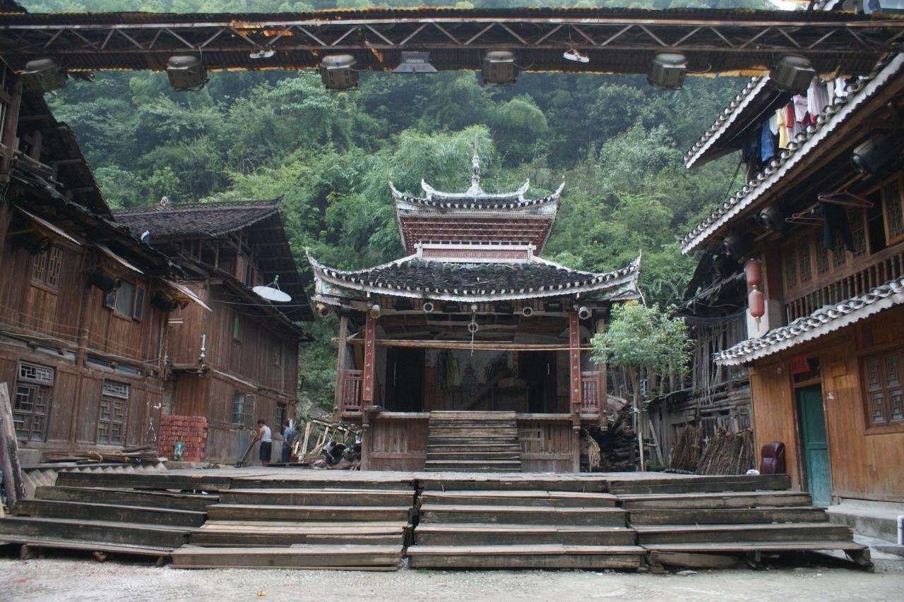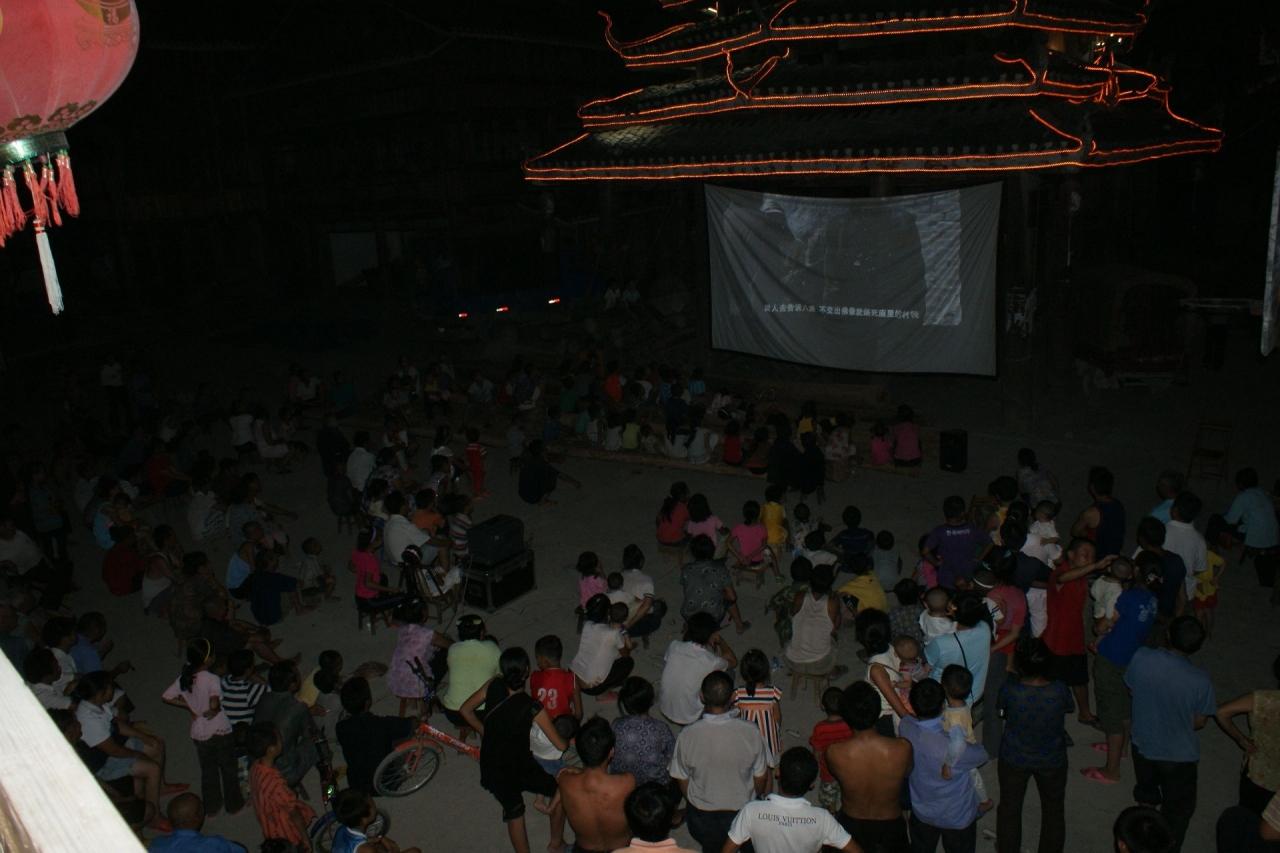 トン族を代表する村、肇興。この村の夕暮れを散歩した後、鼓楼の戯台の前で演じられる歌の民、トン族の表演を遠くから眺めた。なんせ目の前の椅子席は50元の有料だから…