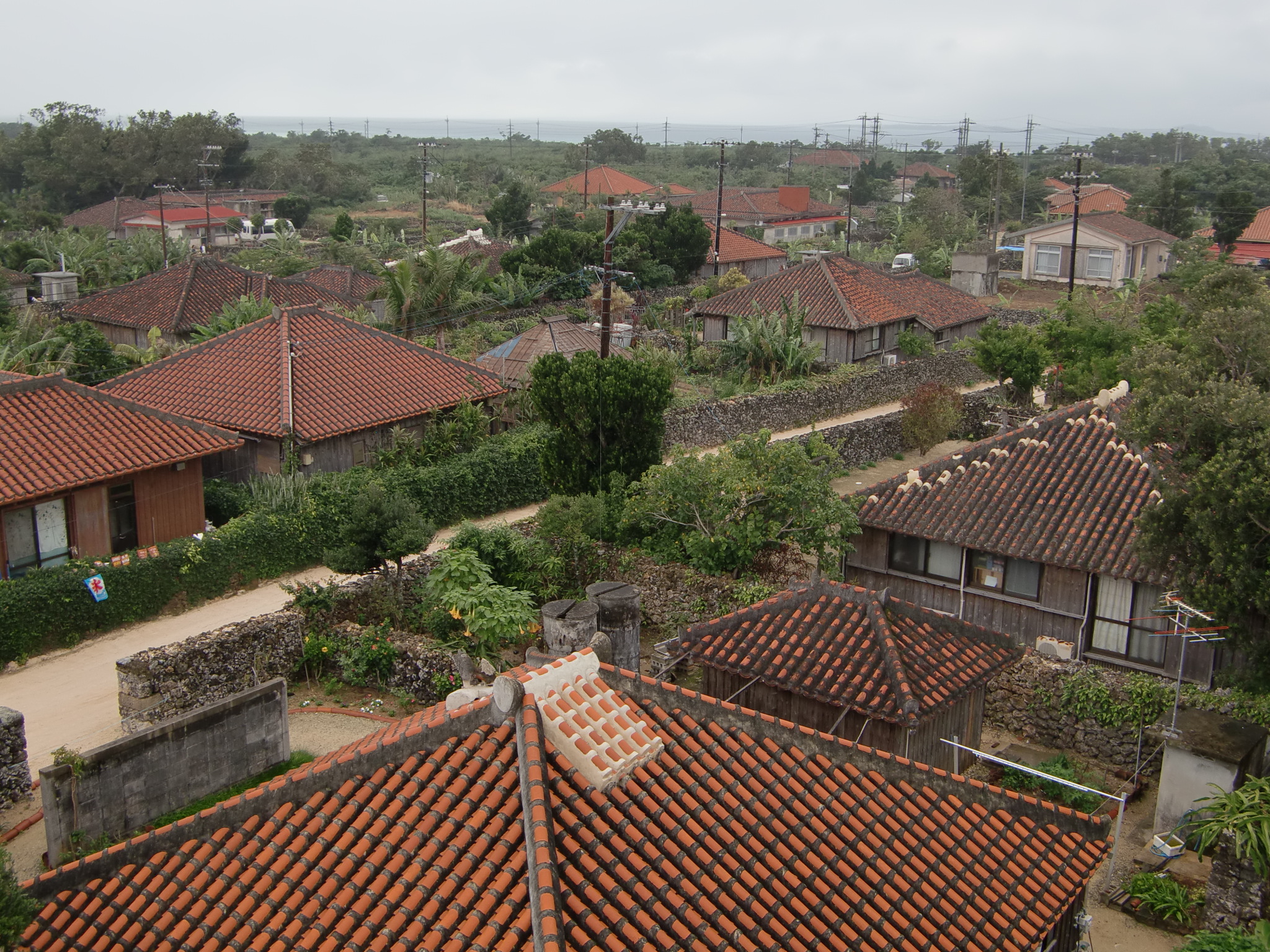 なごみの塔から見た竹富島の集落の風景
