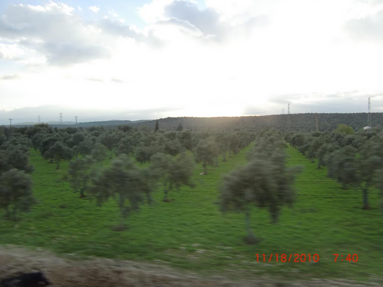 ぼけてますがこれはオリーブ畑です。