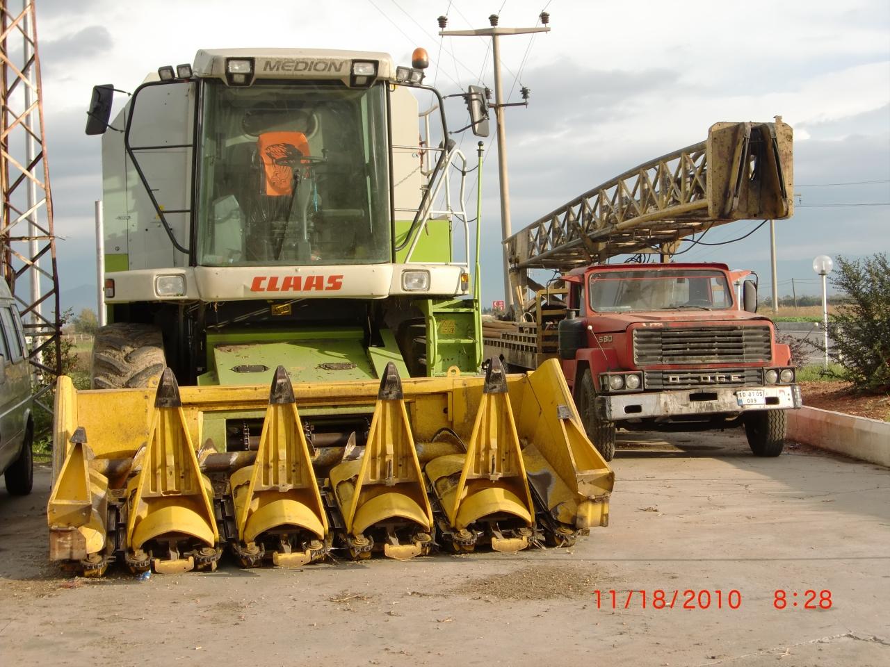 さすが農業の盛んな地方です。はじめて見る特殊車とダッジの、えーとなにをするためのトラックなのでしょう。とにかく両方とも大きい車体です。