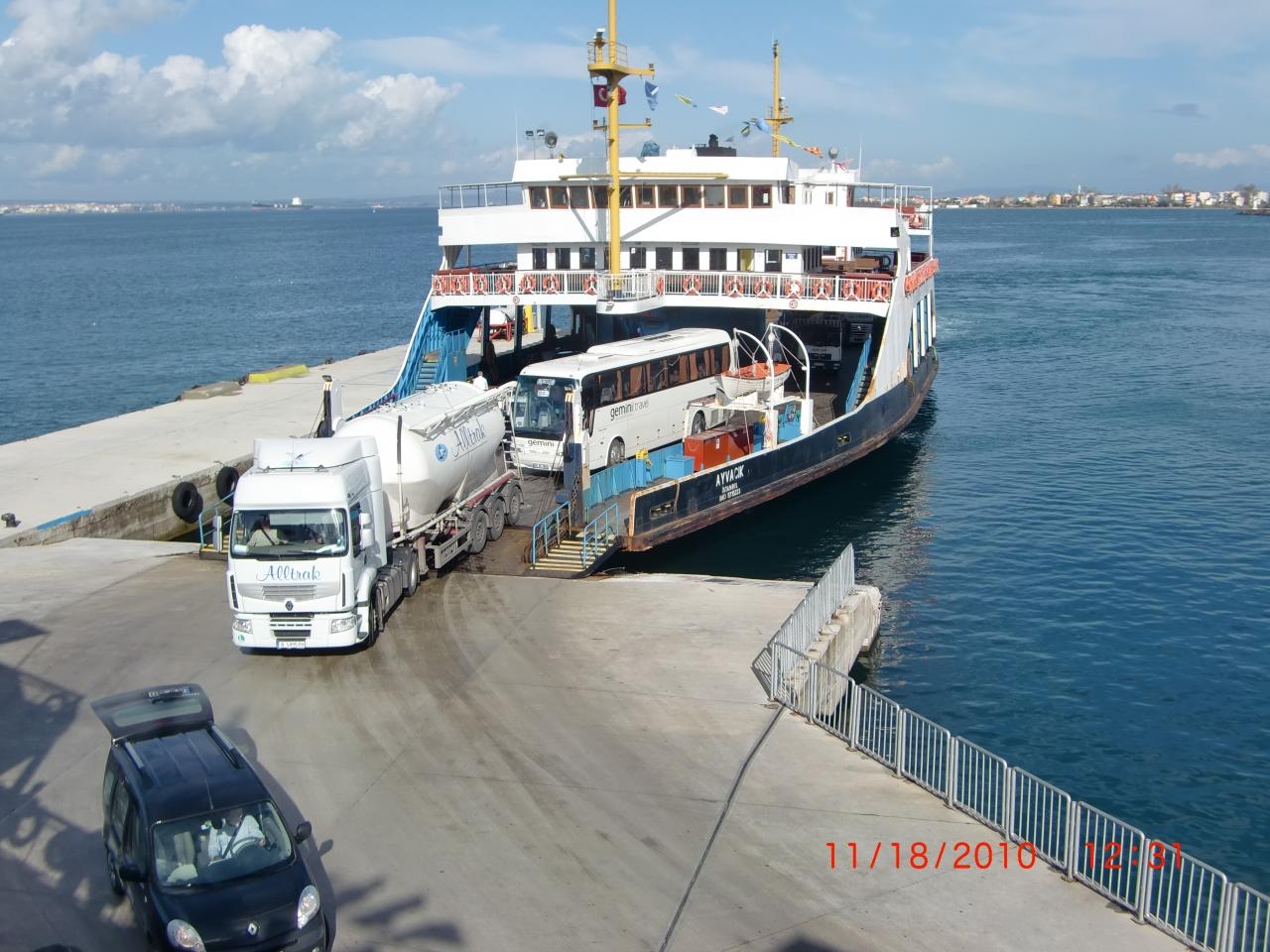 ラプセキ港からフェリーで海峡を渡ります。
