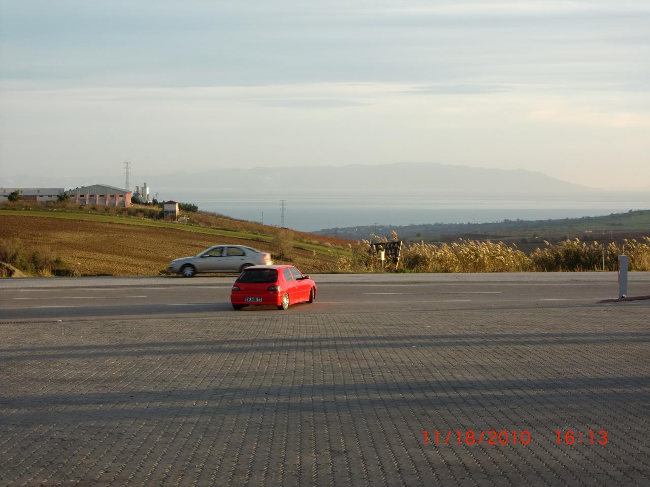 ゲリボルから2時間弱で休憩です。広いパーキングスペース越しにマルマラ海が見えます。 -