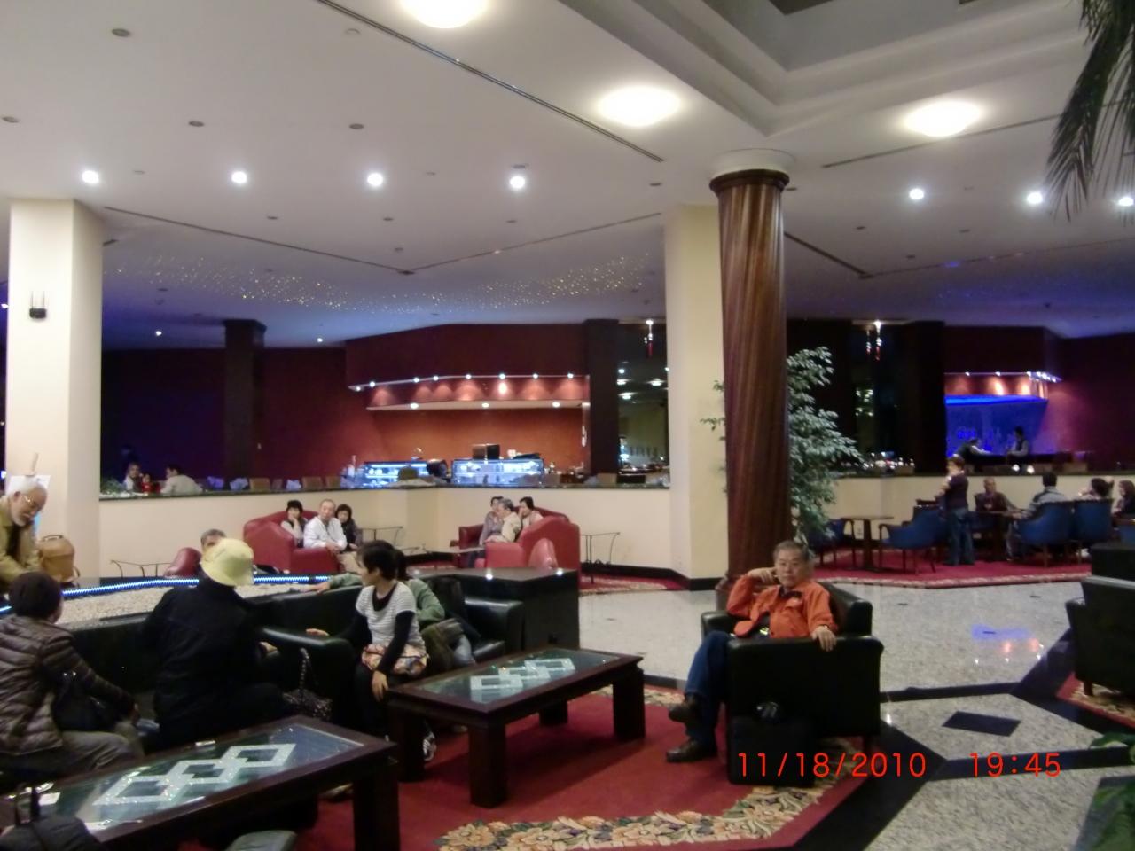 今夜のホテル、グランド ジェバヒルに着きました。ロビーでのんびり。