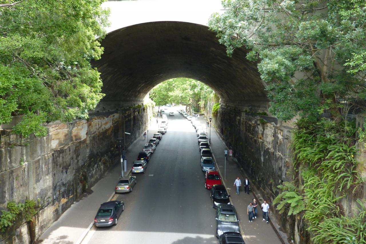 ロックスを東西に分断するハイウェイをくぐるトンネル、ハ−バ−ブリッジが建設されるはるか前、囚人労働者達がハンマ−などの粗末な道具だけで岩盤を切り出して掘ったもの。完成までには1843年から実に10年もの歳月を要した。 -