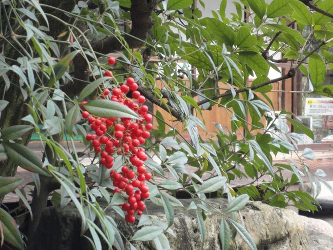 途中にある有名な料理旅館の前にはすでに門松が飾られていました。 -