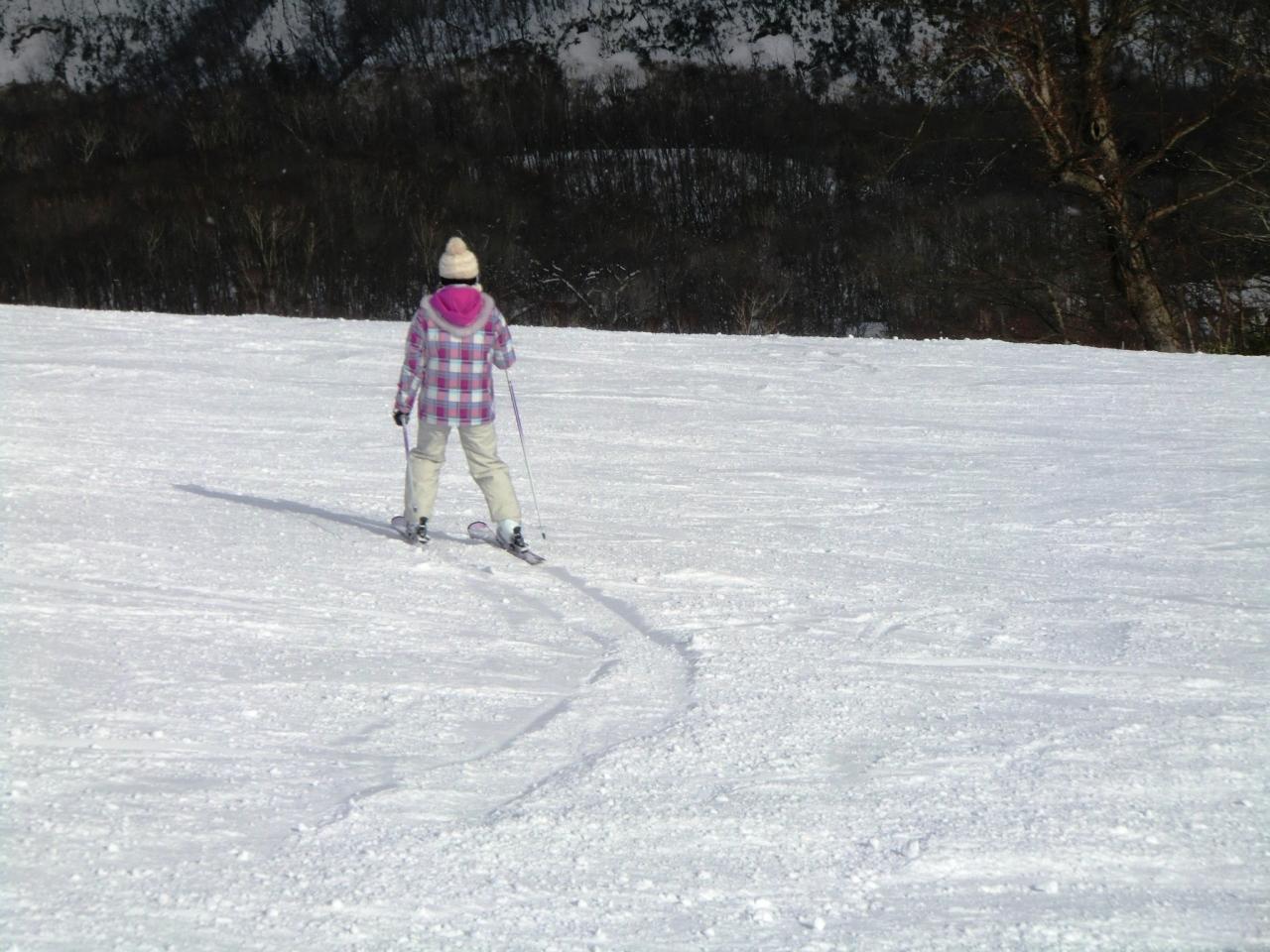 私も後半慣れてきたら、かなり楽にターンができるようになり「ハの字」もかなり「ニ」に近くなったようです。(自分ではよく分からない〜)