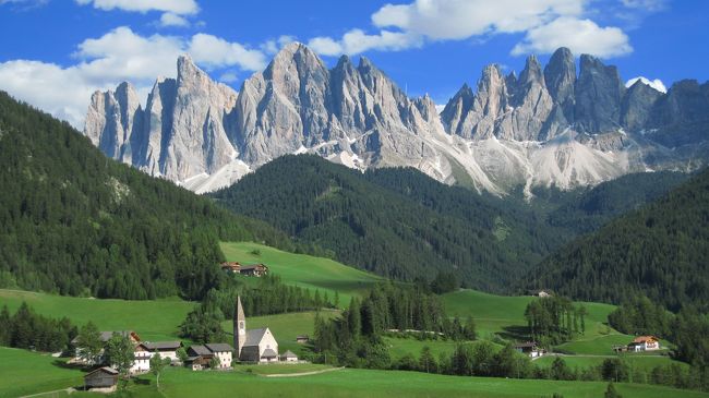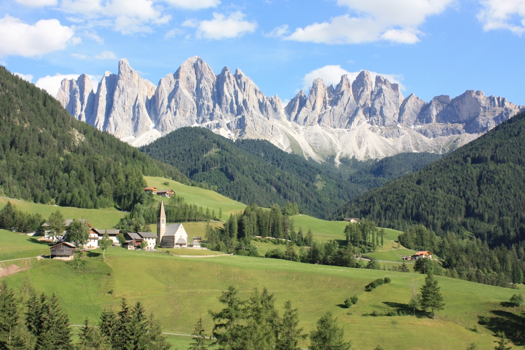 ガイスナー山塊の下に広がるフネスの谷の美しさは格別。