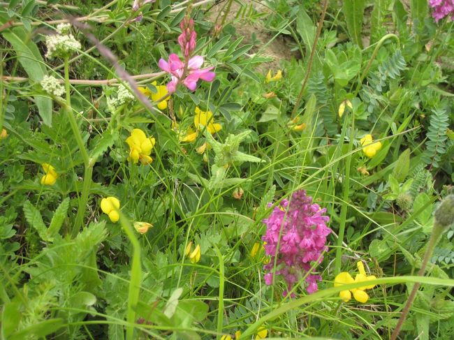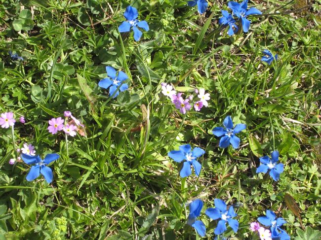 高山植物が今は盛りと、咲き誇っている。岩山と草原そして可愛らしい高山植物の花々のコントラストが、本当に美しい。