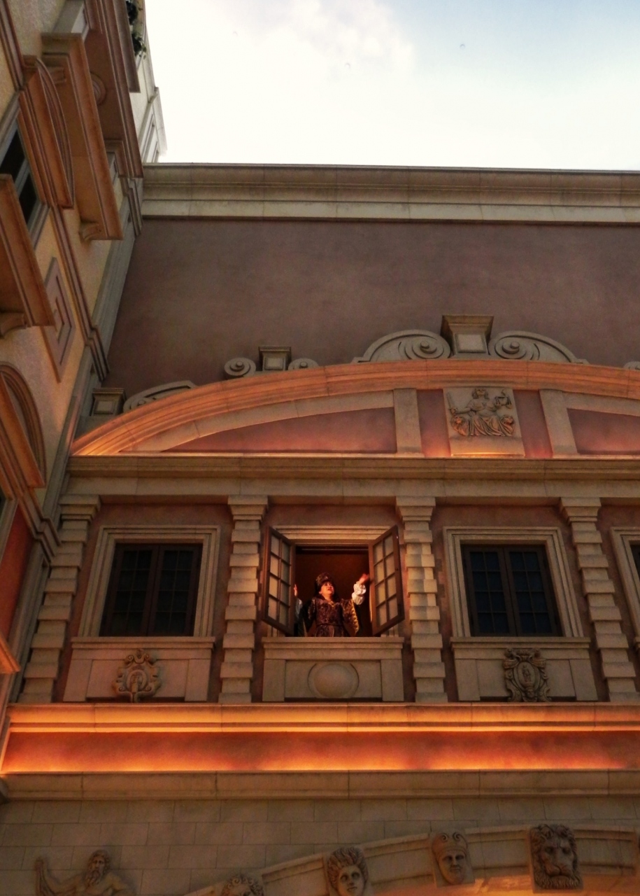 ☆写真はヴェネチアンのショッピングモールで佇んでたら、何の前触れもなく頭上の窓を開けて現れ、脳天を直撃するような高音で叫びだすちょっと???なご婦人。