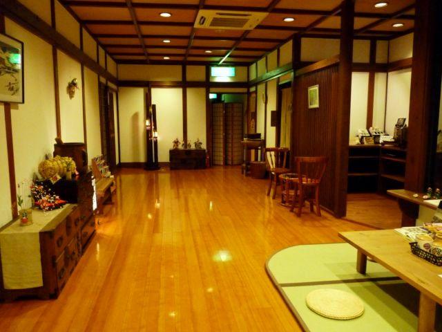 夕方の玄関ホールとラウンジ。