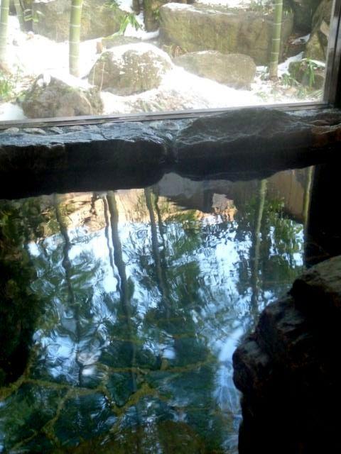 お湯にユラユラと映る竹の影。