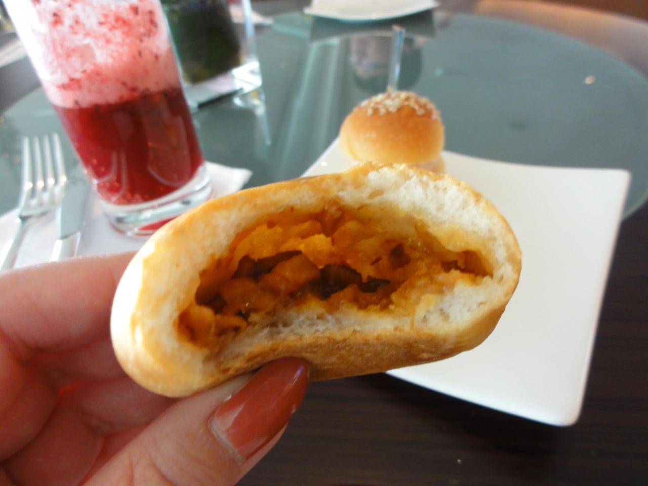 右手のさっき写真を撮ったときに気になってたアンパンみたいなのをいただいてみます -