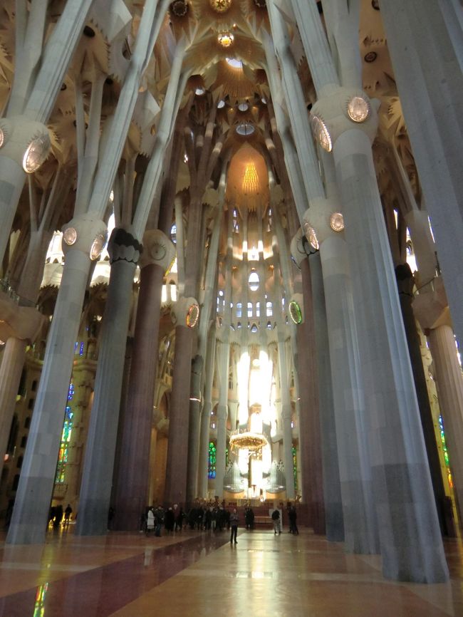 バルセロナの旅行記の中でサグラダ・ファミリアを拝見しましたところ、教会の身廊部分(内部)が完成しているのを見てびっくりしました。2009年にw私が訪問した時はまだ工事中で床には資材が並んでおり、「ローマ法王がミサをするまでに完成させると関係者は言っているけどどうなることやら」とガイドの人が言っていて、私もそんな急ピッチでできるかいなと思っていましたが、見事に完成していますね!