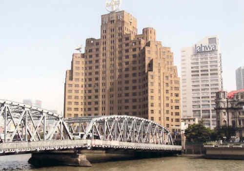 1934年建 上海アールデコ鉄筋造22階建 ブロードウエイマンション 海軍の物資調達機関の児玉機関がフロアを占めた。現在上海大廈 三星ホテルです。手前の橋がガーデンブリッジです。1階に上島コーヒーがあり、前から上海には上島コーヒーが数多くあります。最近スターバックスが増えている。08年4月7日ガーデンブリッジは補修の為1年間撤去されました。