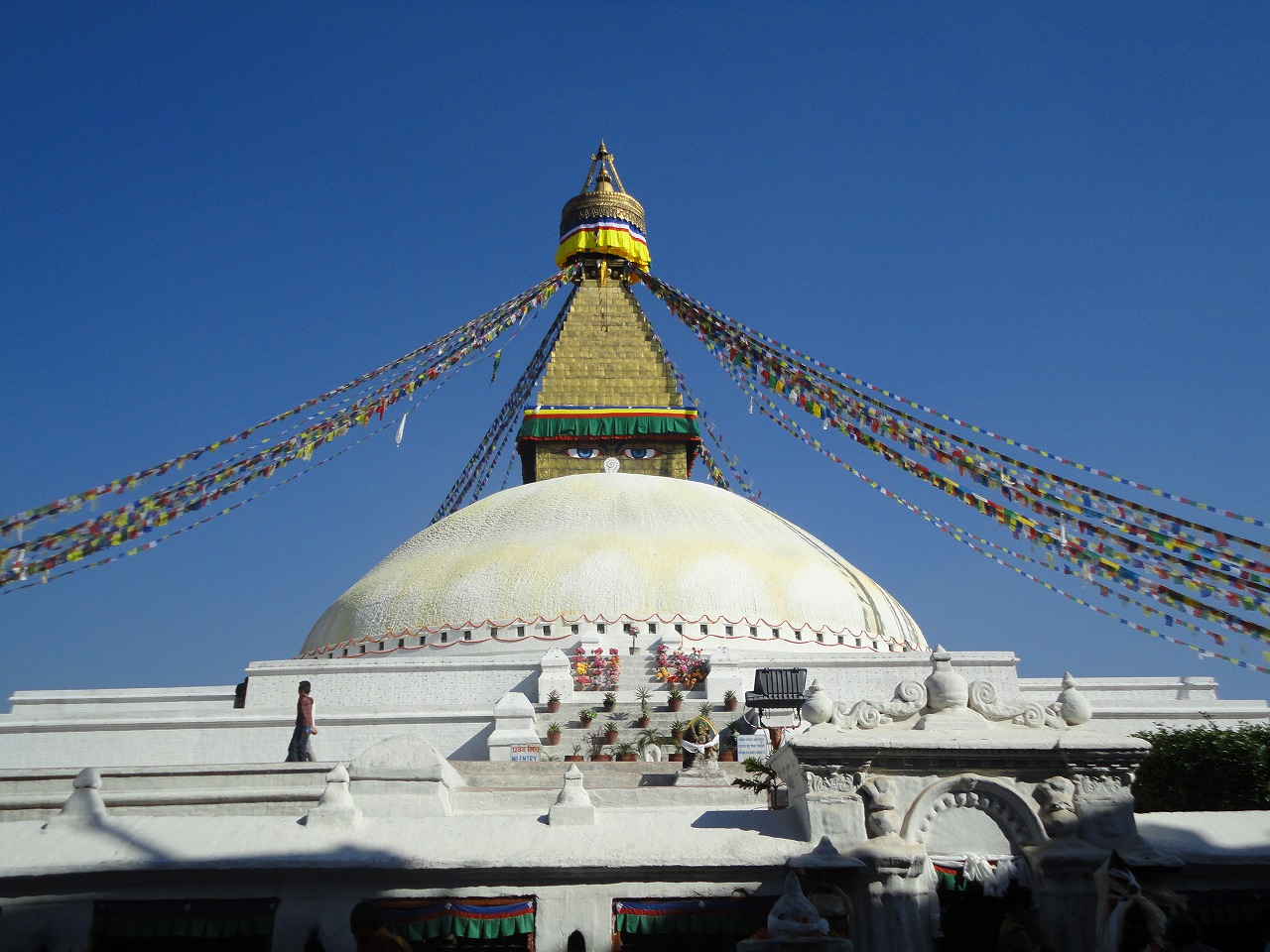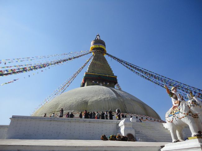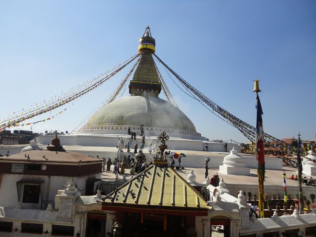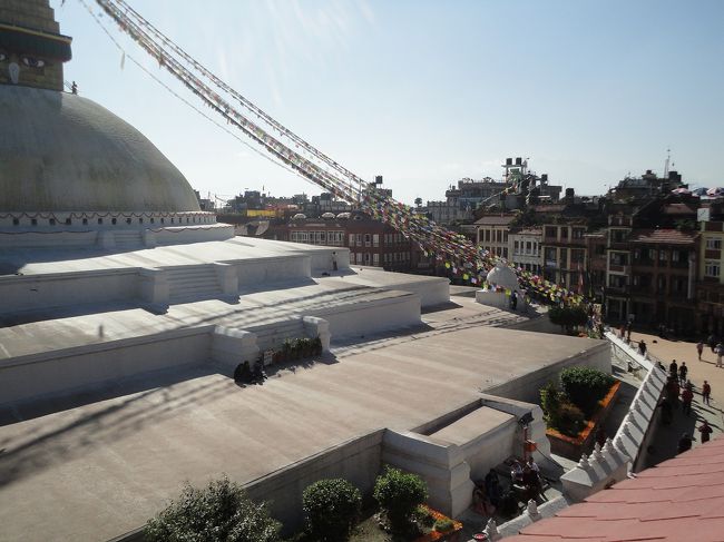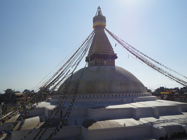 空港からカトマンズに戻らずに近郊にあるボダナートへ移動しました。世界有数のストゥーパです。大きさに圧倒されました。途中まで登ることができます。