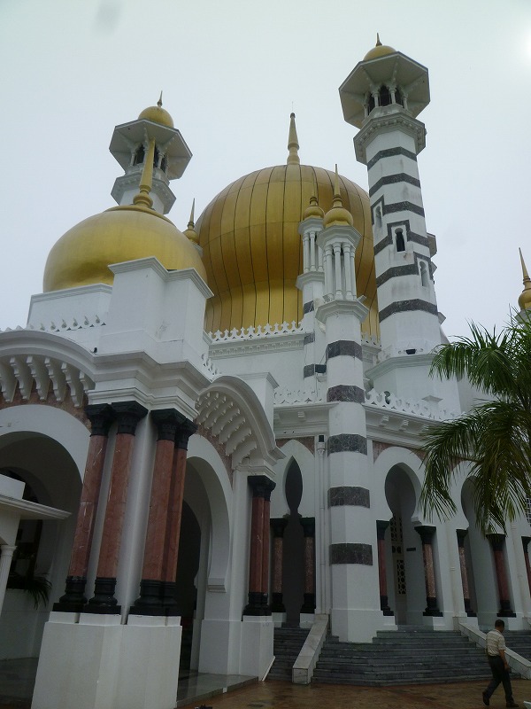 クアラ・カンサー、ウブディア・モスク。1910年に着工され1919年に完成した。マレーシアで一番美しいモスクと言われており、金色のドームが印象的でした。