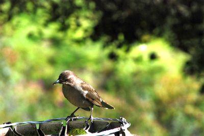 車で20分ほど戻って,朝食のレストランへ.山を望むテラスのテーブルで朝食を待っていると,鳥たちがたくさんやってきた.