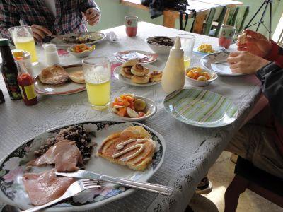 こんな感じの朝食.周囲は鳥がいっぱいいて,写真を撮るのも忙しいのだ.朝食時間が長くなる.