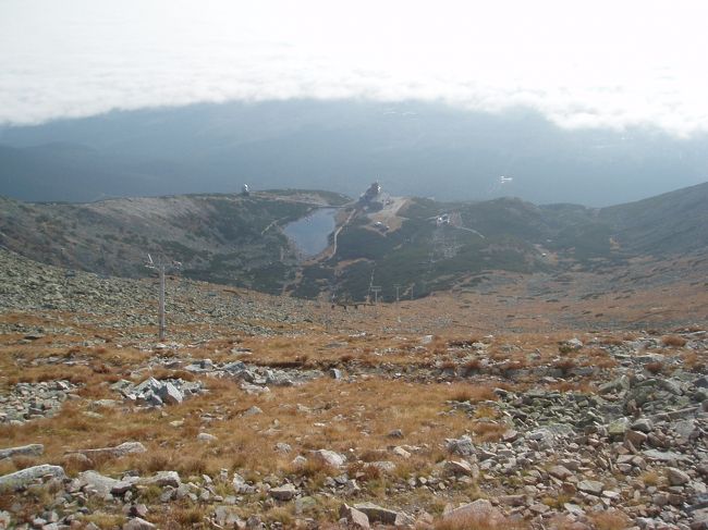スカルナテー・プレソからさらに小さなケーブルカーで標高2633mのロムニツキー・シュティート峰に行ってパノラマを眺めようとしましたが、残念ながらオフシーズンのせいなのかケーブルカーが運行されていませんでした。ケーブルカーと平行してリフトが運行されていたので、リフトで上に登りました。