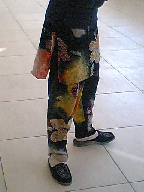 空港にいた女の子のお洋服の下のスカートとズボン。