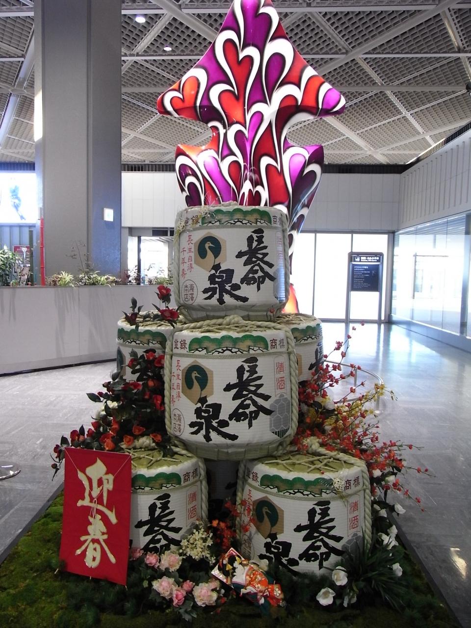 出発ロビーで出国の方は枡酒いただいて、