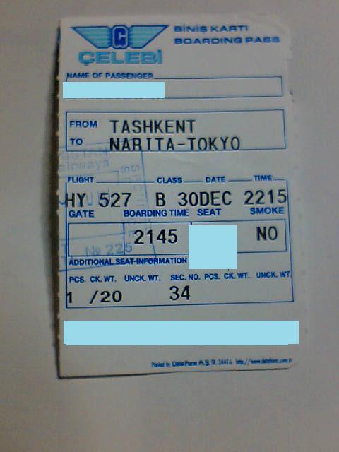 2010年12月30日(木)イスタンブール⇒タシケント⇒成田(12/31)着