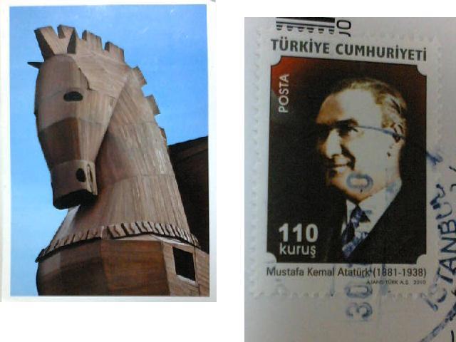 トロイでポストカードを買い、最終日のシェラトンで出しました。(切手2TL)