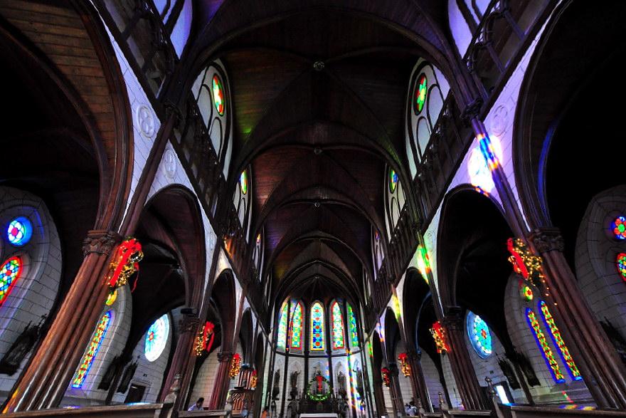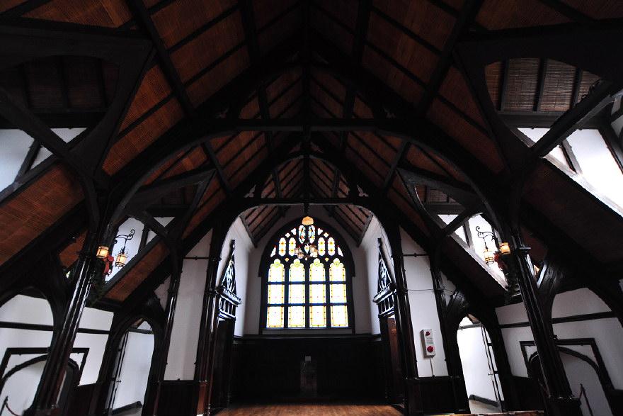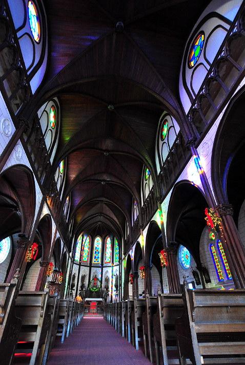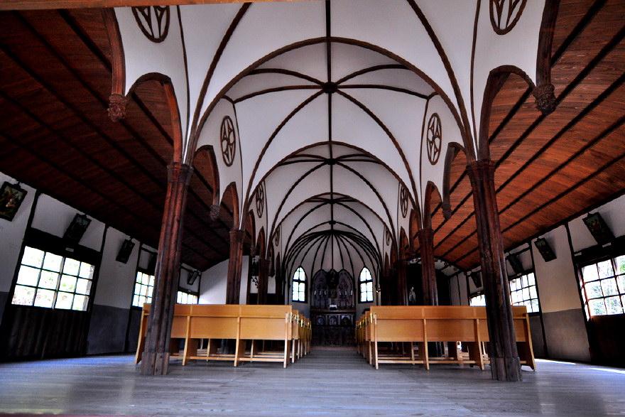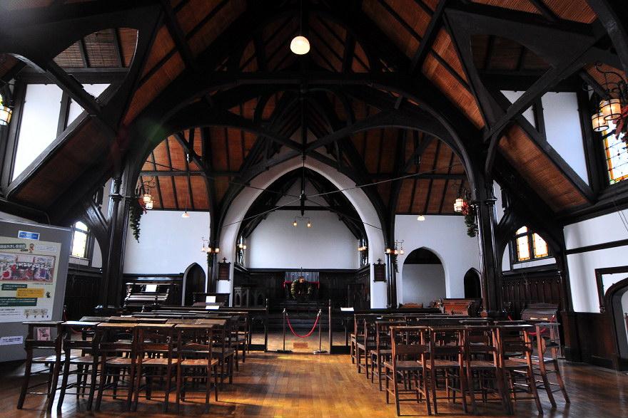 広角で撮った建物、どれも堂々とした風格を感じさせる絵になっていいですね。聖ザビエル天主堂のステンドグラスで彩られた身廊は、万華鏡をのぞくかのような美しさに仕上がって、広角レンズの面白さ全開!カメラは面白いですねえ。