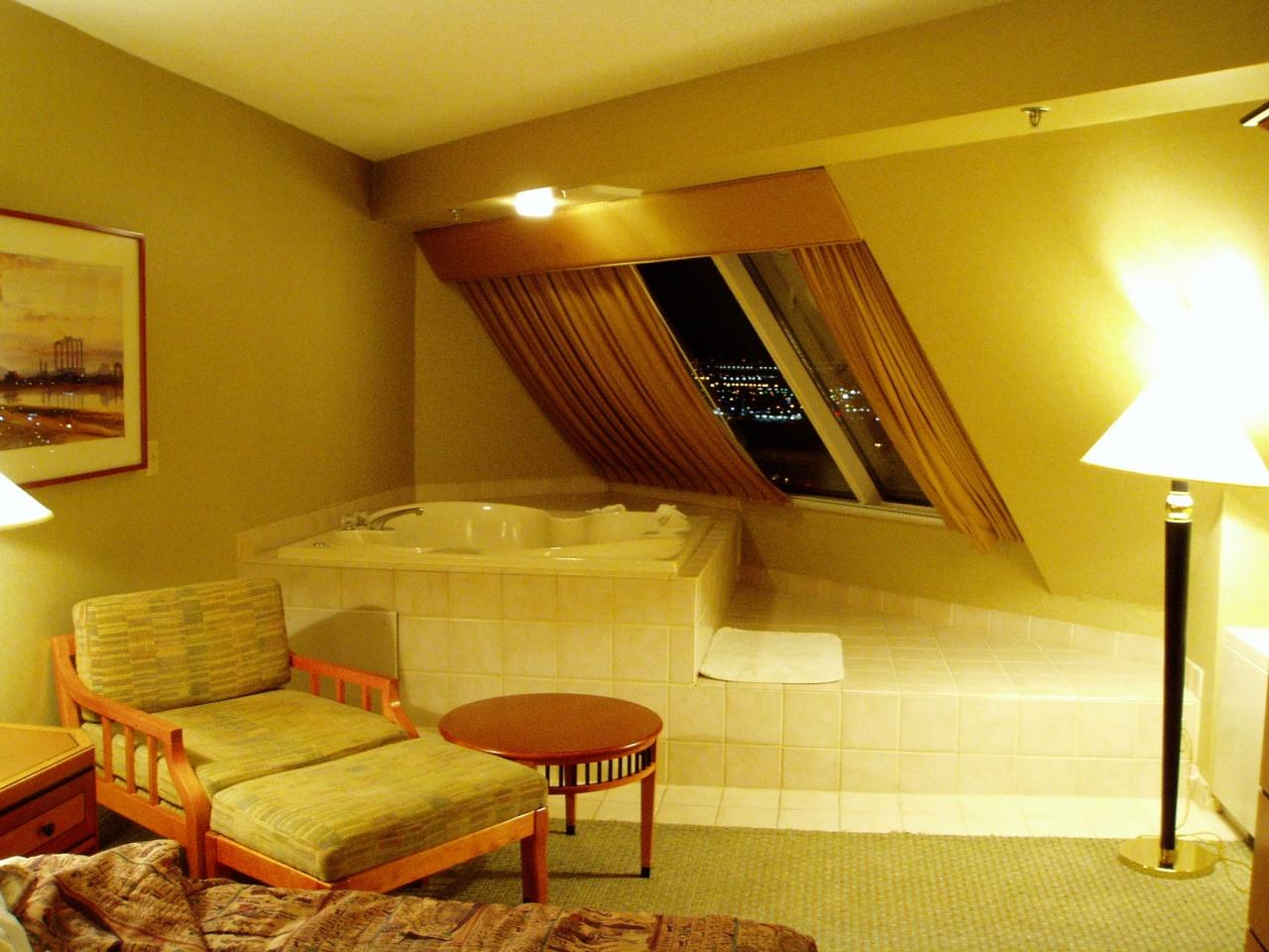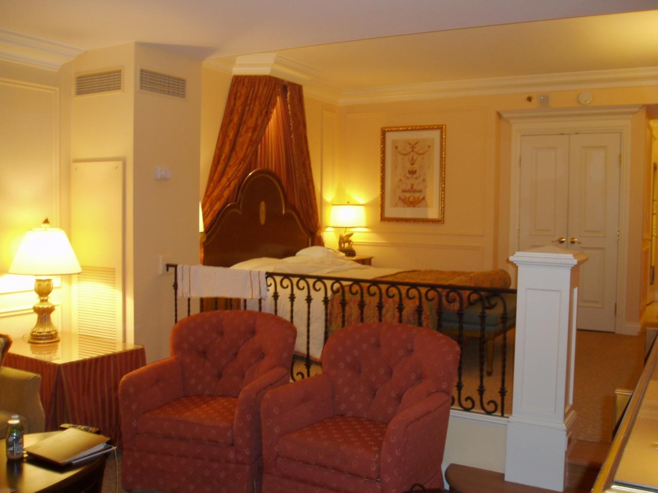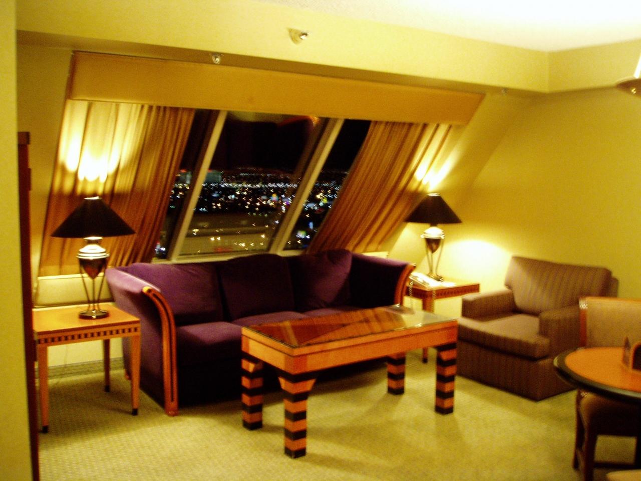 ジュニアスィートは2部屋からなっています。これはリビング。窓が斜めになっているの。ピラミッドの一部であることを内部から実感!!!