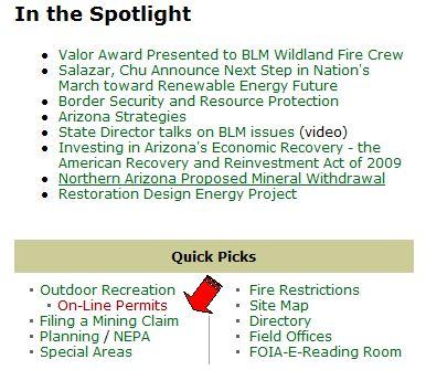 Arizona BLMをクリック -