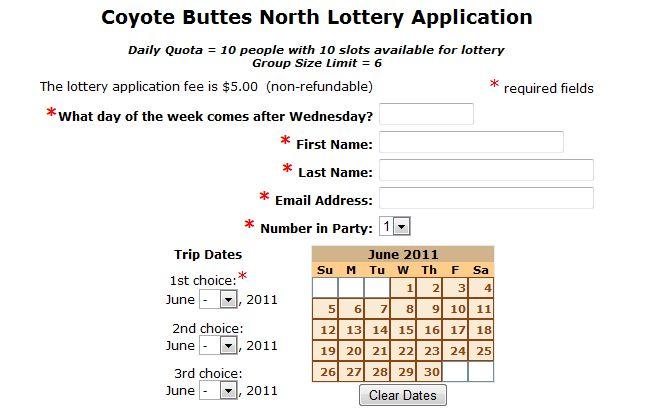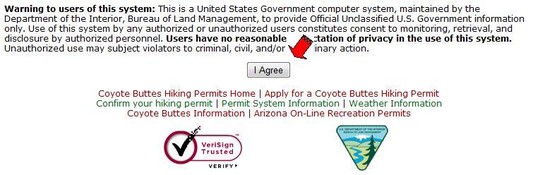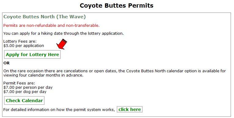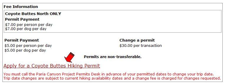 Apply for a Coyote Buttes Hiking Permitをクリック