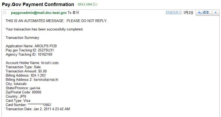 最終的にうまく入力できるとメールが2通送られてきます。