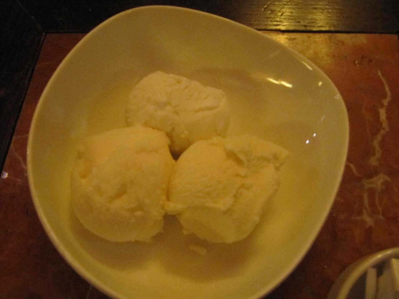 アイスクリームを頼んだら バニラとレモンとヨーグルトのアイスが 盛り合わさっていて 美味しーい、二重丸です。