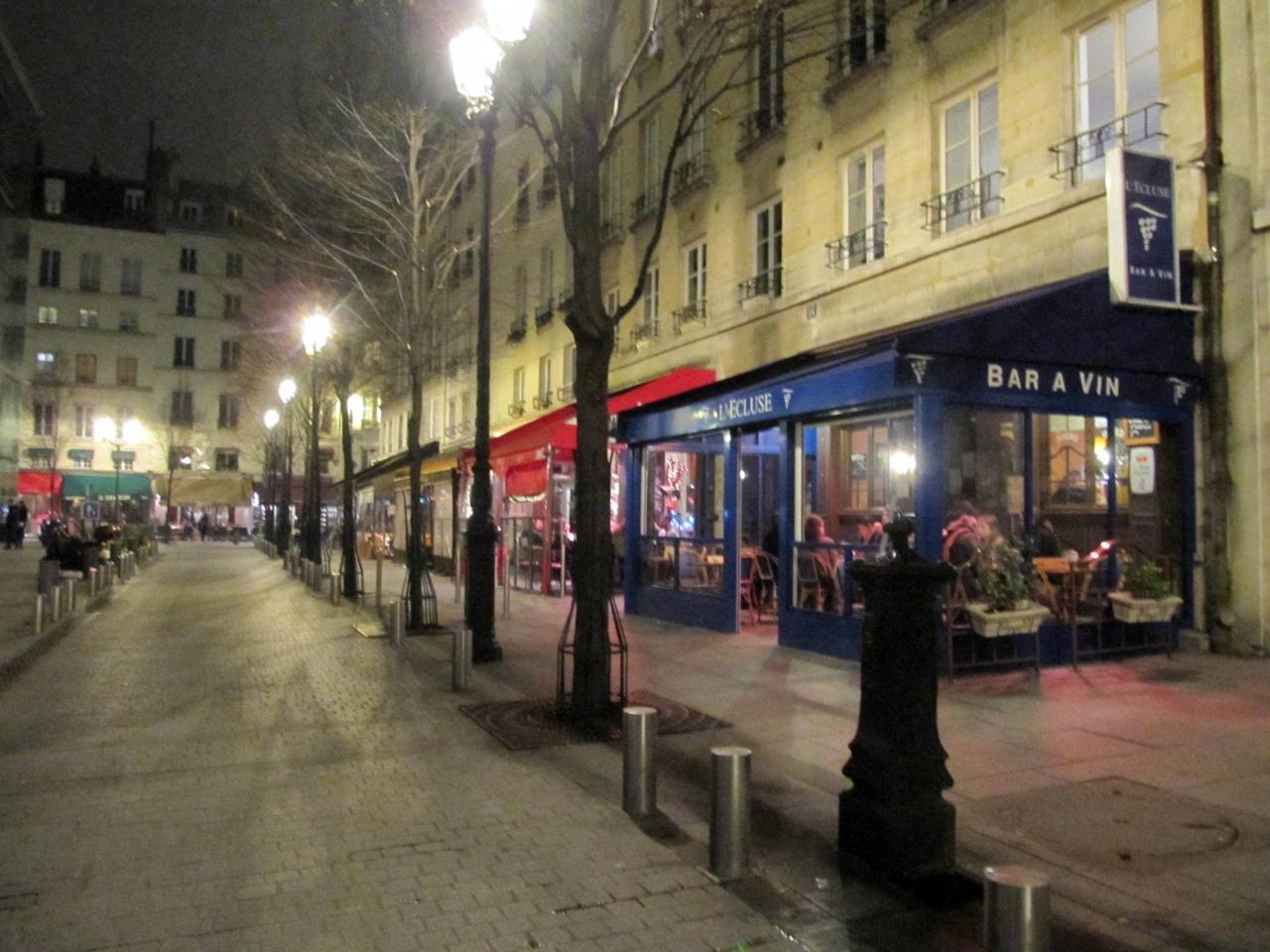 ピラミド駅近くの マルシェ・サントノーレ広場に立ち並ぶ ワインバーの中で やはり此処が 一番混みあっています。