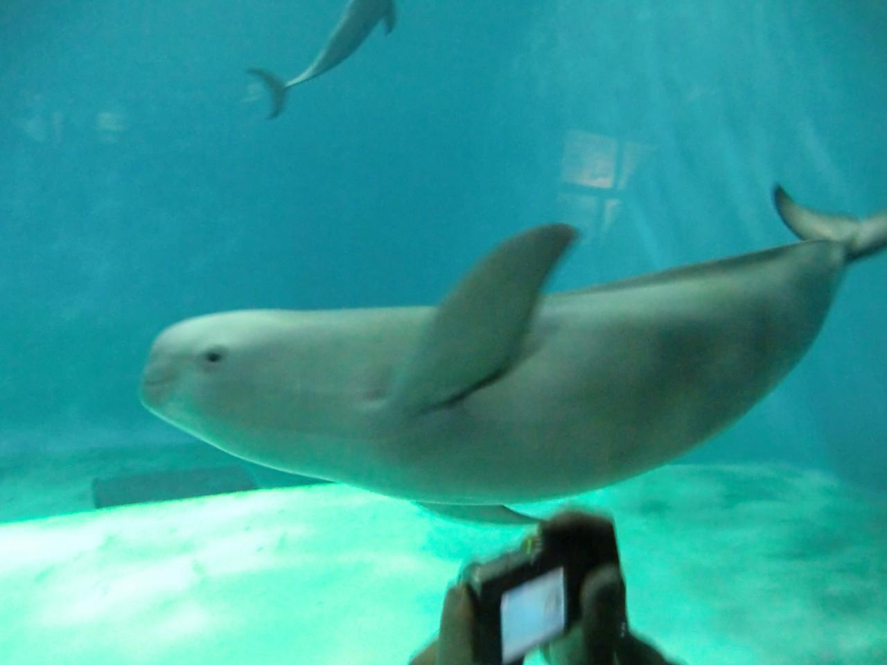 シロイルカはデリケートらしく(目が弱いそうでフラッシュ禁止)て、上からの展示はやってないのがちょっと残念。 -