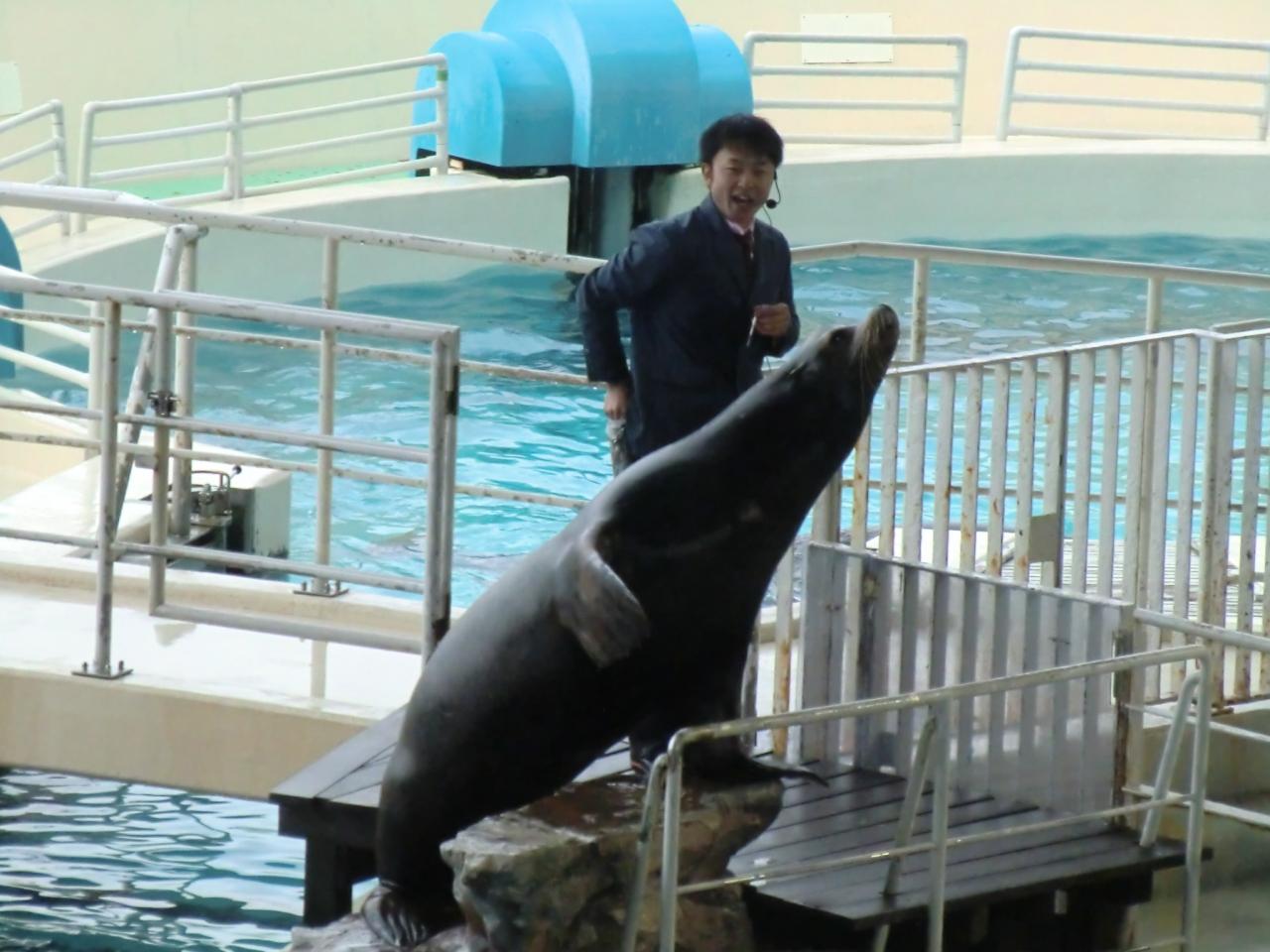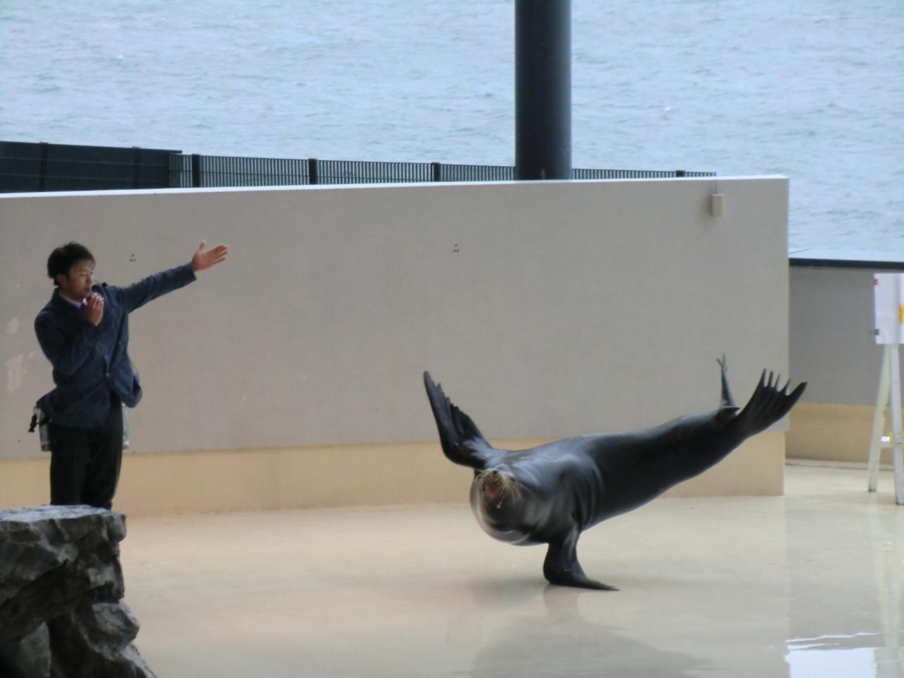 これは、海響館でしか見られない(少なくとも最初に始めたのは海響館)、オリジナル技です。