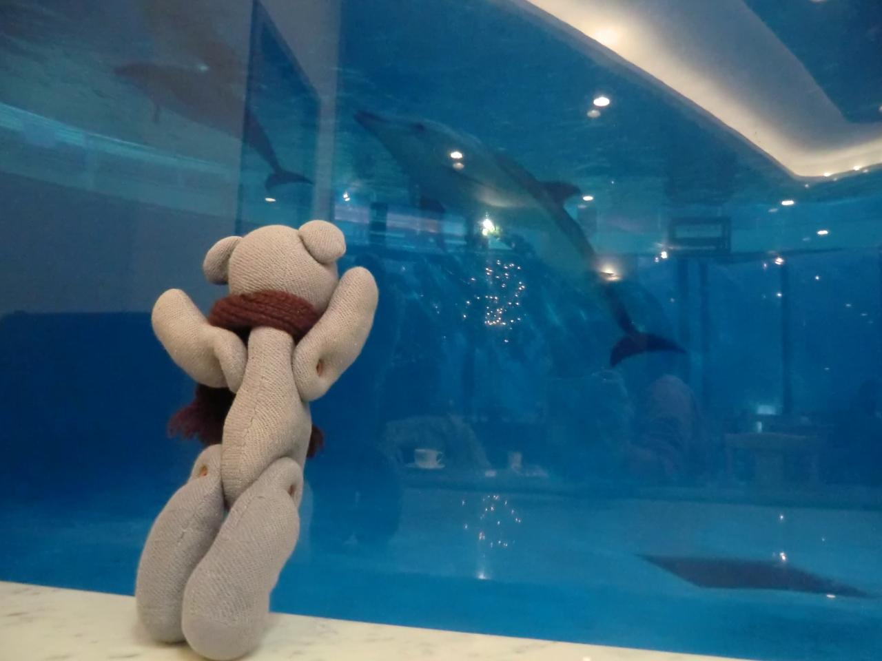 窓際か水槽側か聞かれて、迷わず水槽側ゲット。