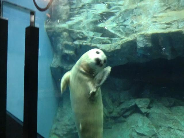 スナメリの横の水槽には、ゴマフアザラシがいます。