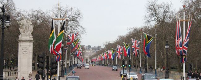数年ぶりに再びバッキンガム宮殿に行ってみました。すると前回来た時と同様国旗が掛けられていました。またどっかの国の偉いさんがきてるんだろな〜と思い歩いていると、映画のワンシーンのような光景を目にしました。信号が信号が赤だったのですが、そこに急に2台の白バイが止まり車を止めました。そこの数台の白バイに囲まれた高級車がブレーキも踏ますスピードを出して通り過ぎて行きました。