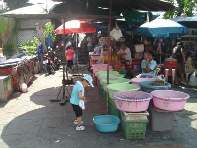 今日はママがホテル前のマッサージ屋さんにいくので、坊ちゃんと二人でチャオプラヤーに船に乗りにいくことに。