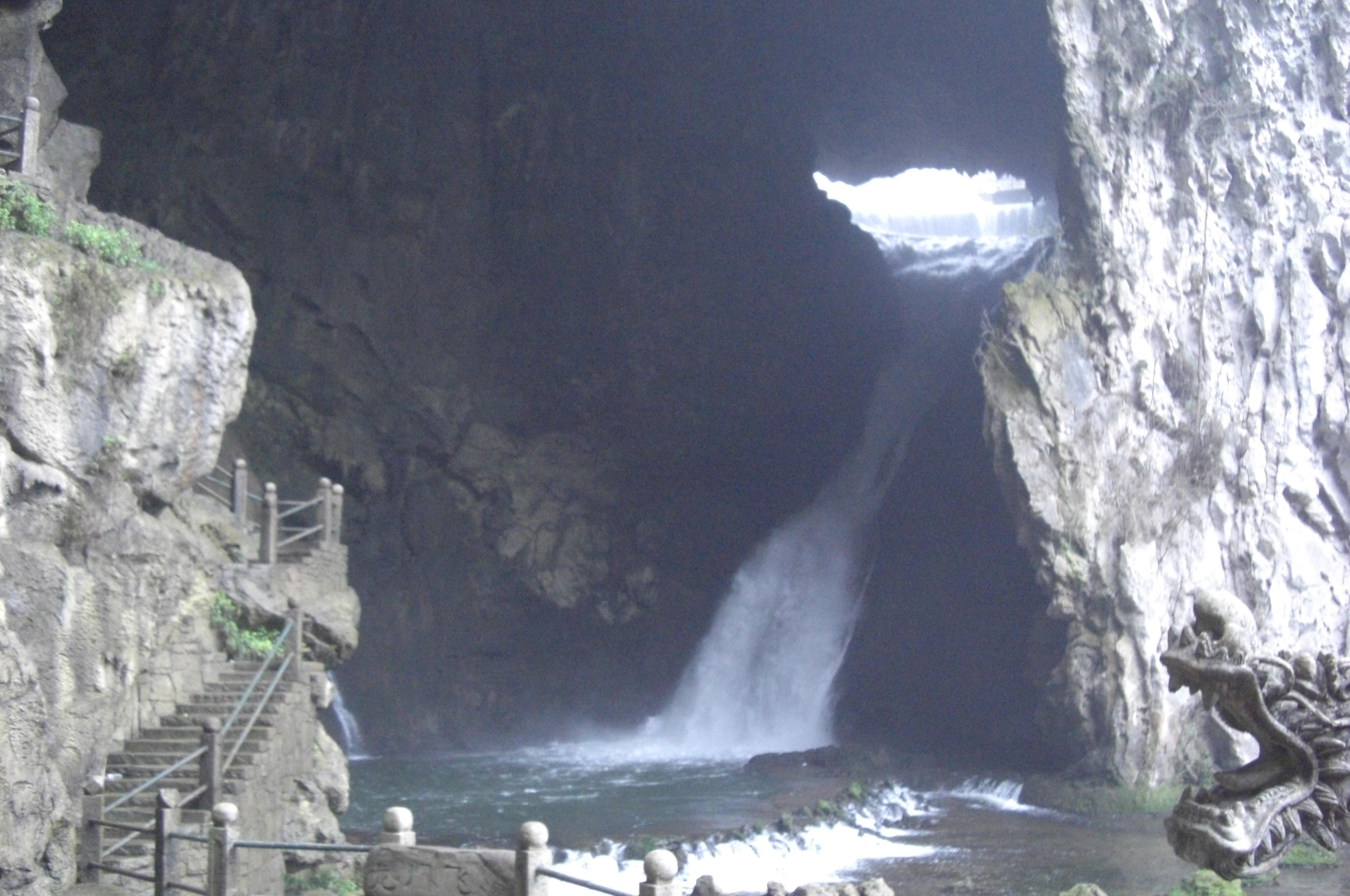 まるで天空から落ちてくるような水が洞窟の中を滝のように流れ落ちてきている。そして川になって流れていっている。