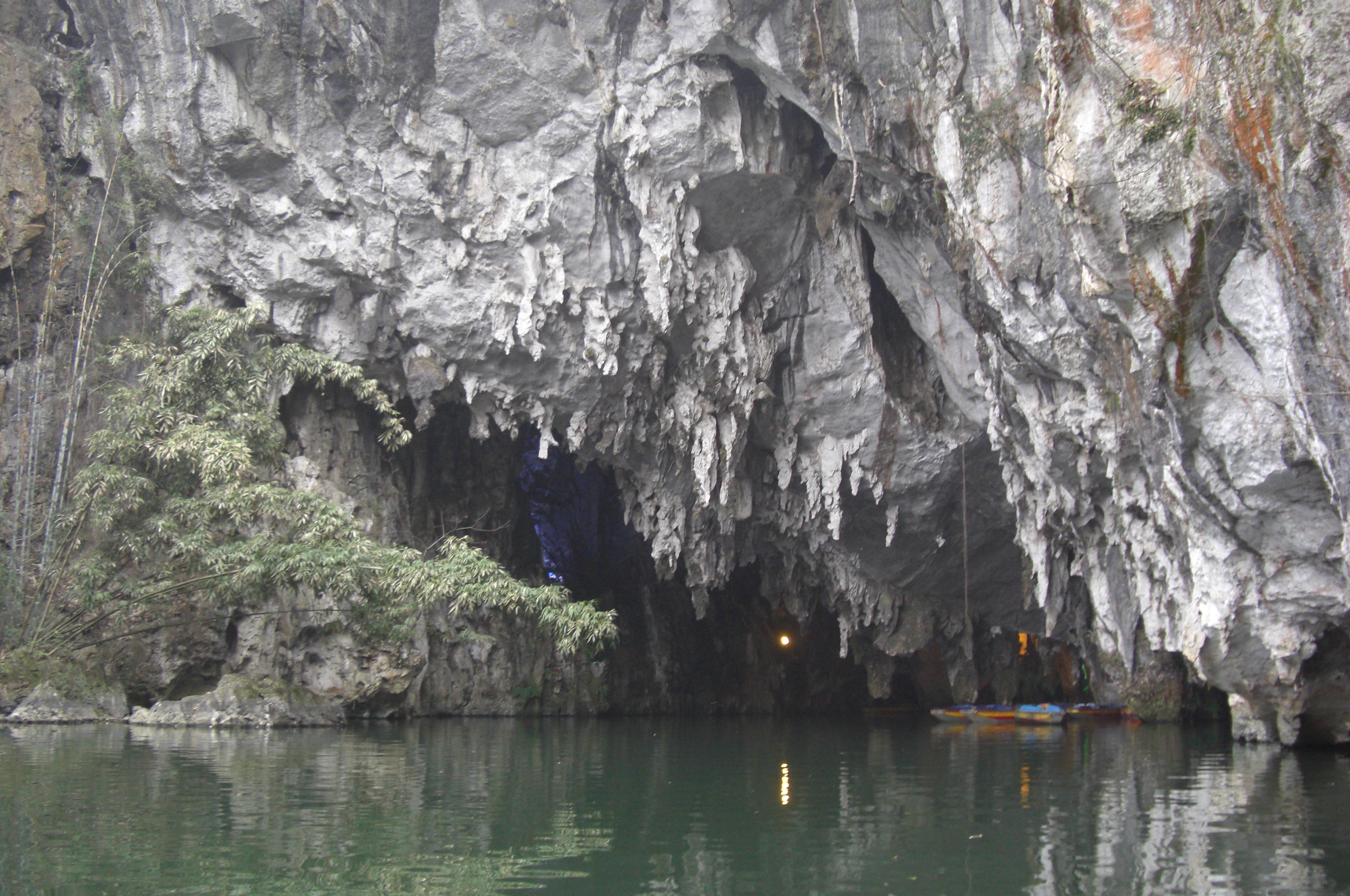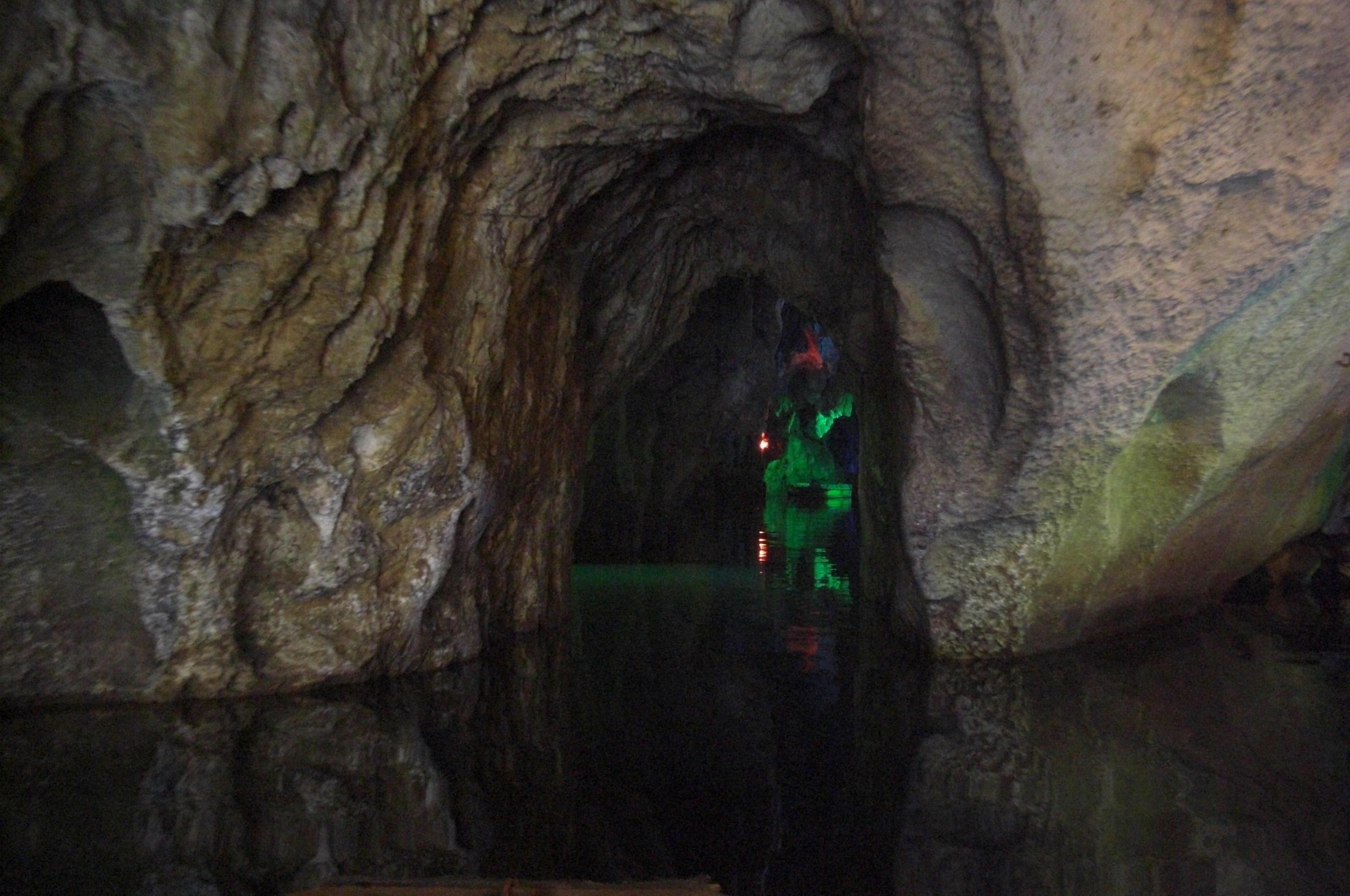 鍾乳洞の中には舟で案内してもらえる。中は広く大きい。