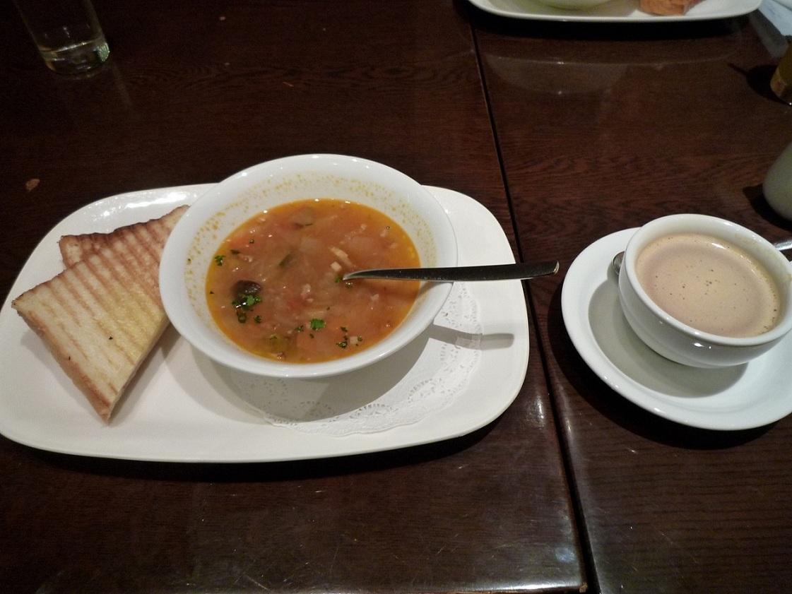 ちょっと寒かったので、スープ(ミネストローネ)にしました。