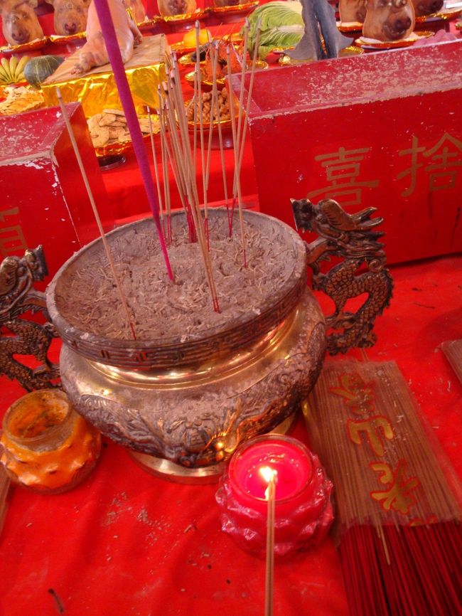 唐人屋敷会場では、ロウソク祈願四堂巡りって言うのがあっていて、唐人屋敷にある四堂(土神堂・天后堂・観音堂・福建会館天后堂)を全て巡ってロウソクをお供えすると願いがかなう、と言われているらしく、女性の方とすれ違うのが多かった。。 -