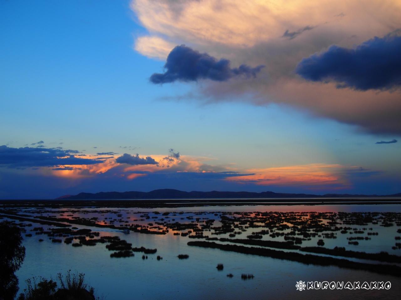 チチカカ湖側はこんな風に少しピンクがかった雲になってきます。