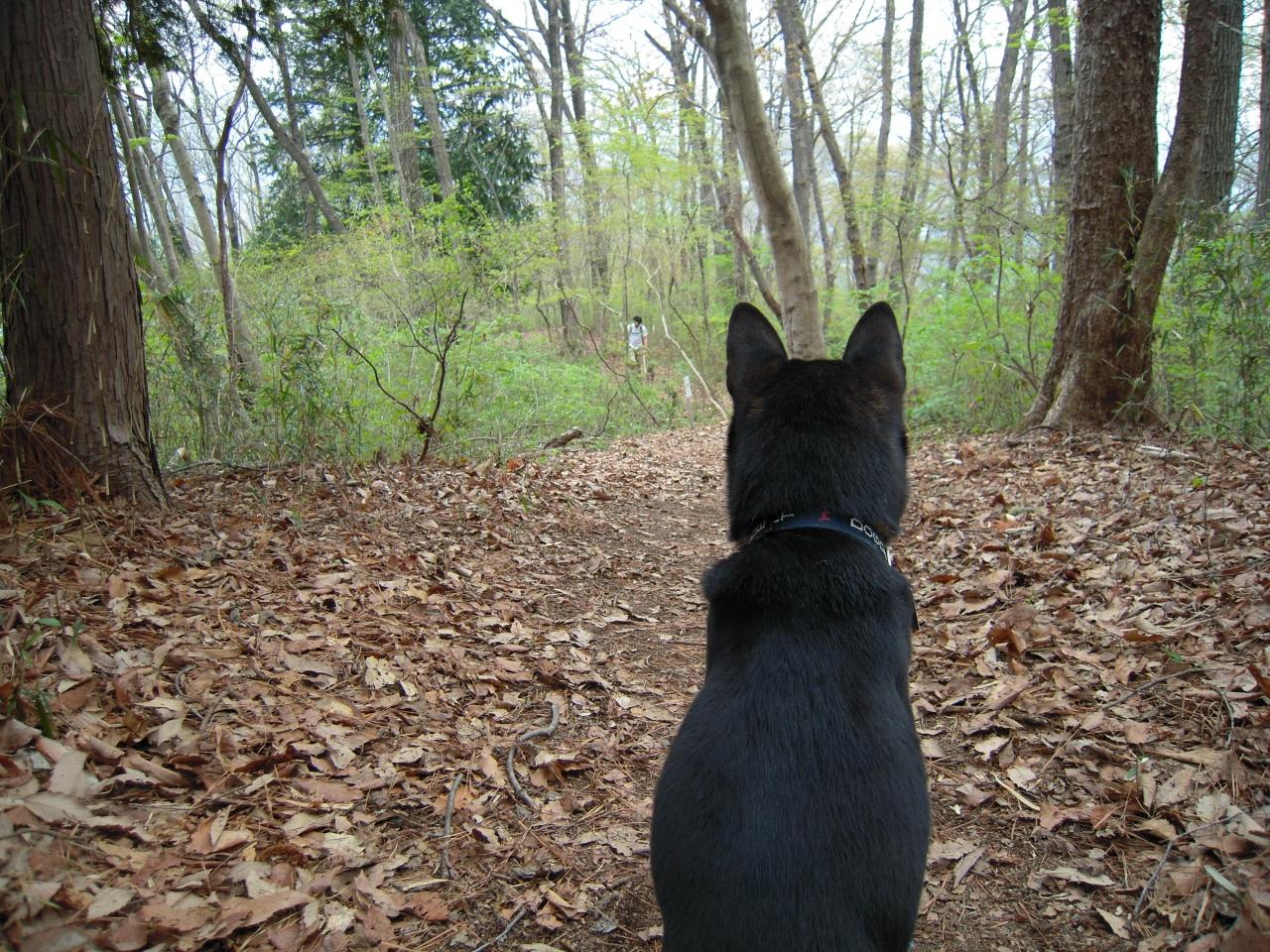急な登りも時々あって なかなか登ってこないご主人様を待つ犬